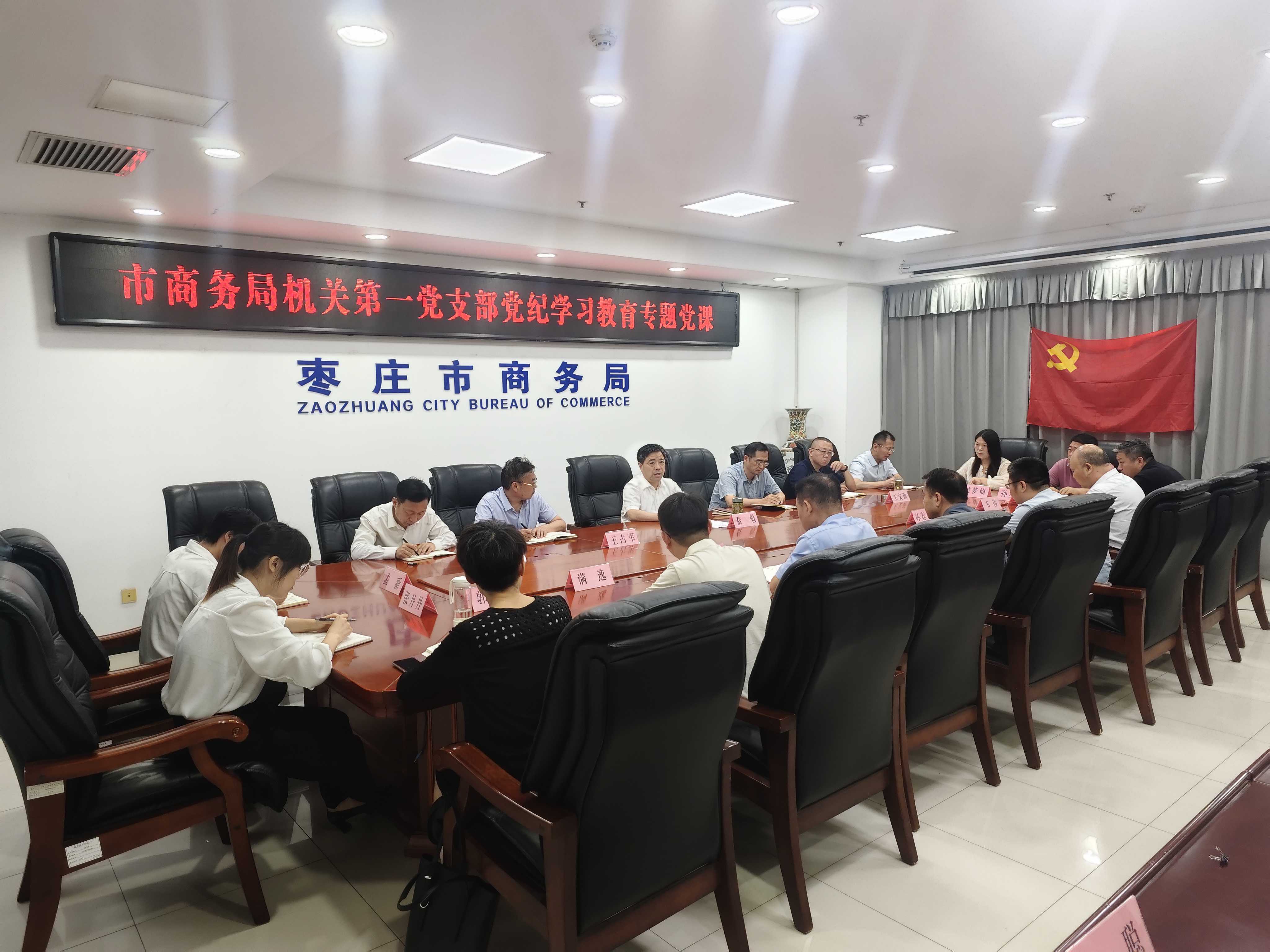 7月8日,市商務局黨組書記、局長、市投資促進局局長秦魁參加所在支部黨紀學習教育集中學習,并為全體黨員講授紀律黨課。